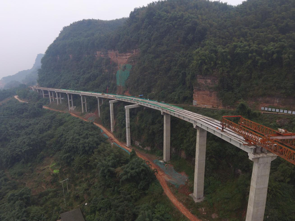 11月12日,由瀘州交投集團作為項目業(yè)主組織建設(shè)、交投項目公司現(xiàn)場管理的G546項目最高墩柱橋梁——椒子林大橋第13跨開始架設(shè),預制梁片已架設(shè)48片。